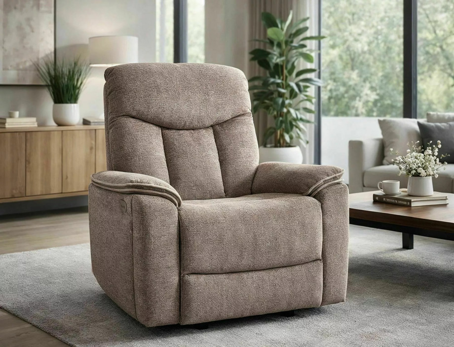 Кресло реклайнер электрическое Odys Raven Темно-бежевая ткань / Черный каркас