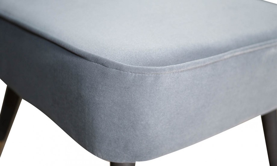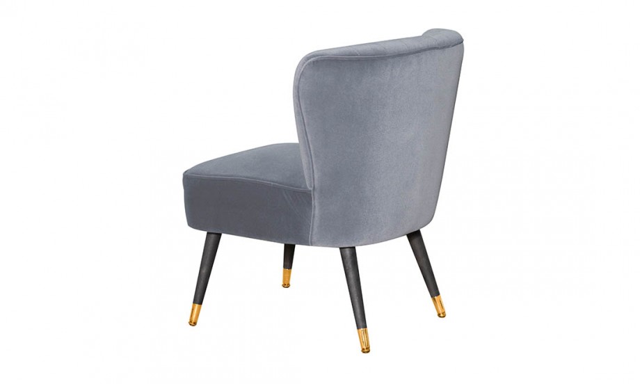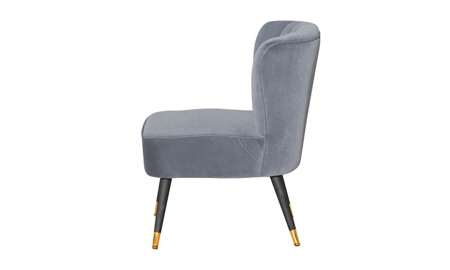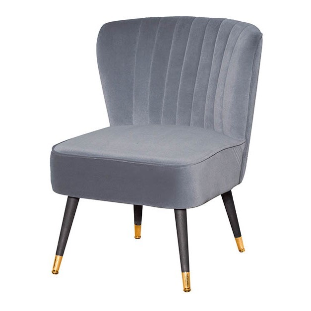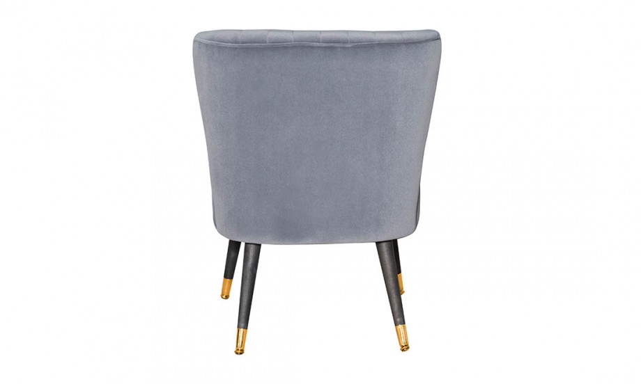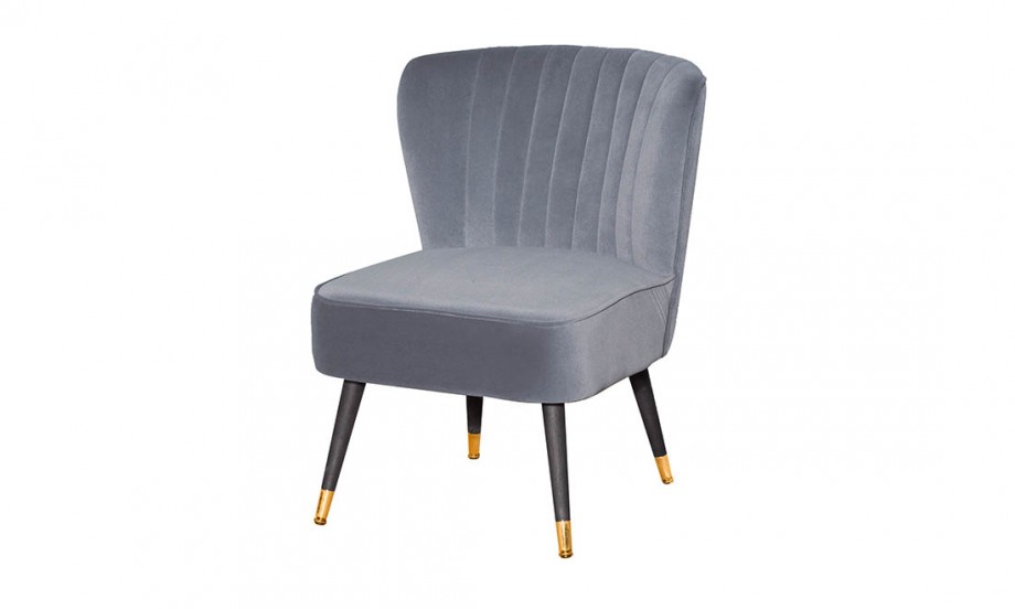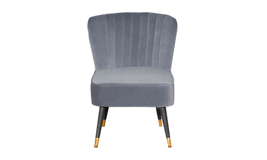 КРЕСЛО РЕЙН МЯГКОЕ Лаконичное Кресло Рейн прекрасно впишется в любой интерьер вашего дома Мягкая, приятная на ощупь ткань, простые удобные формы сделают комфортным ваш отдых. Преимущества модели: Обивка: серый велюр; Ноги: дерево гевея, черный+золотые наконечники Размер: 580x680x750