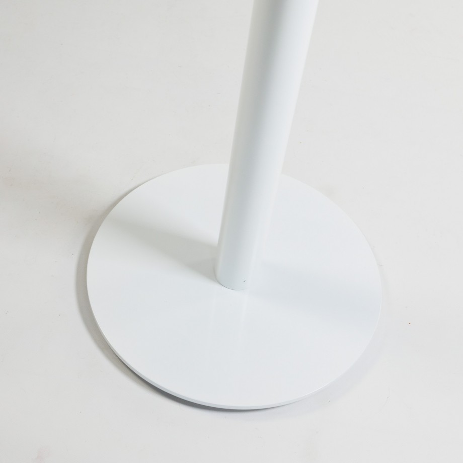 Стол производится из натуральных и экологичных материалов. Столешница визуально выглядит легкой и не перегружает пространство, но в то же время она крепкая и надежная. Для ее производства применяется специальная технология, делающая ее долговечной. Опора стола – это металлическая ножка с блином. Такая конструкция получается невероятно крепкой и устойчивой.