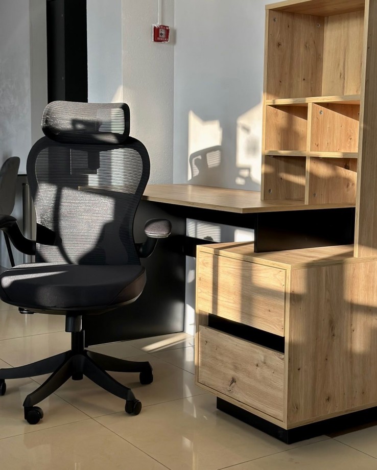 Стол сочетает в себе лаконичность минимализма и функциональность: четкие прямые линии, контраст натурального дерева с матовым черным и выдержанные пропорции делают его идеальным решением для домашнего кабинета, студенческой комнаты или open-space офиса.
