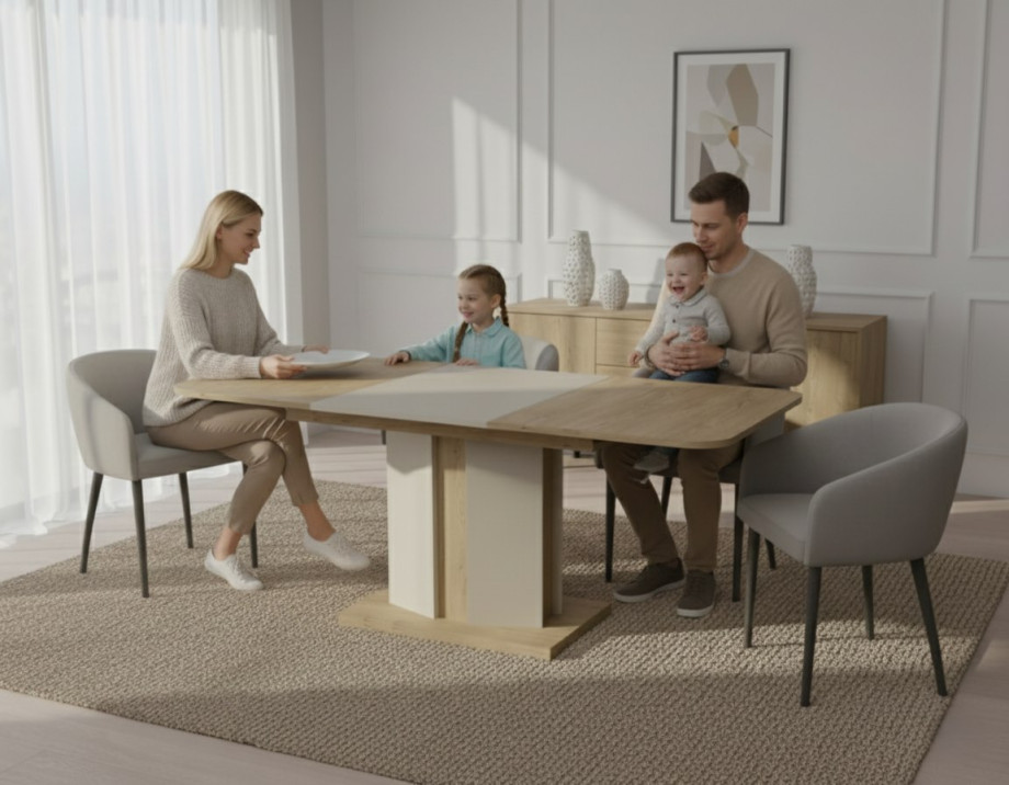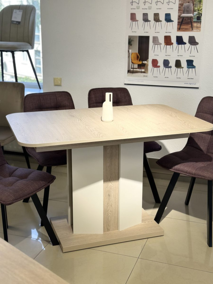 Стол обеденный CRYSTAL D/S дуб кремона котта/стоун беж (CRYSTAL_D/S): стильная и современная модель. Отличное качество и легкость модели добавят вашему интерьеру изысканности и красоты, а экологически чистые материалы, из которых изготовлен предмет интерьера, будут безопасны для вас и ваших близких. Товар поставляется в оригинальной упаковке с подробной инструкцией и всеми комплектующими, что позволяет собрать его самостоятельно, без особых усилий.