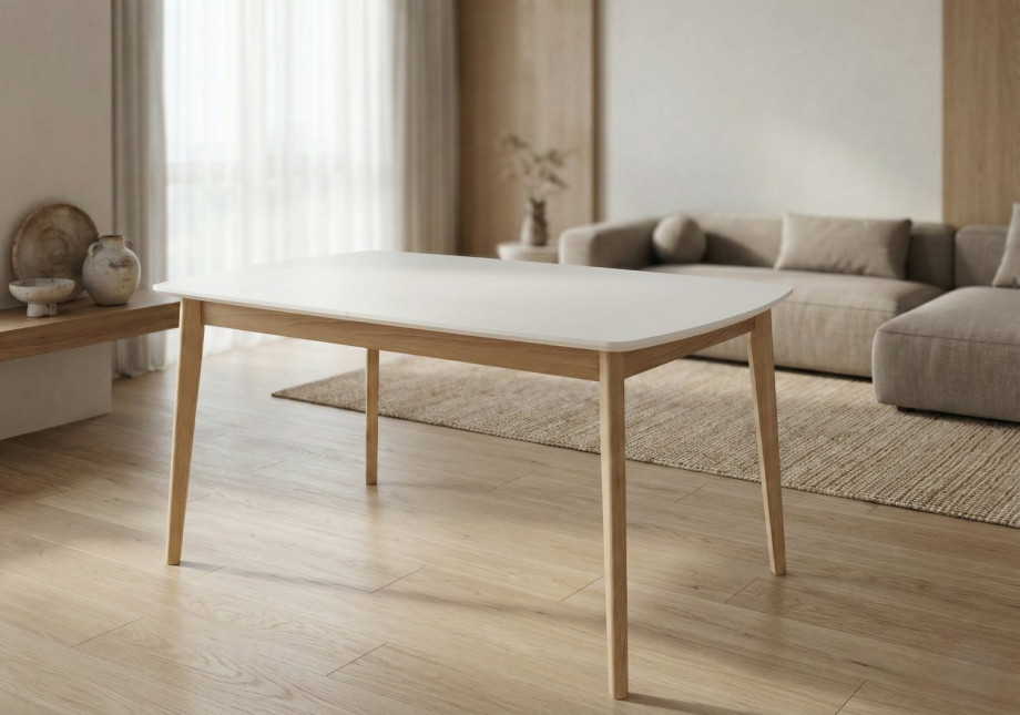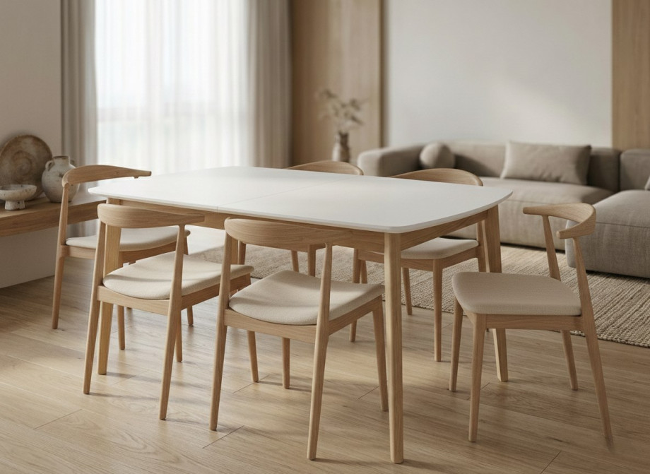 Обеденный стол Exen белого цвета станет хорошим дополнением Вашей кухни или столовой в скандинавском стиле, либо стиле модерн.