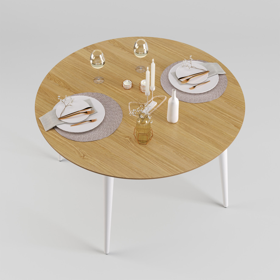 Dan — элегантный и стильный стол круглой формы, который отлично подойдёт для дома, а также для обустройства кафе. Сдержанные линии и однотонное исполнение позволяют использовать стол в любом интерьере.