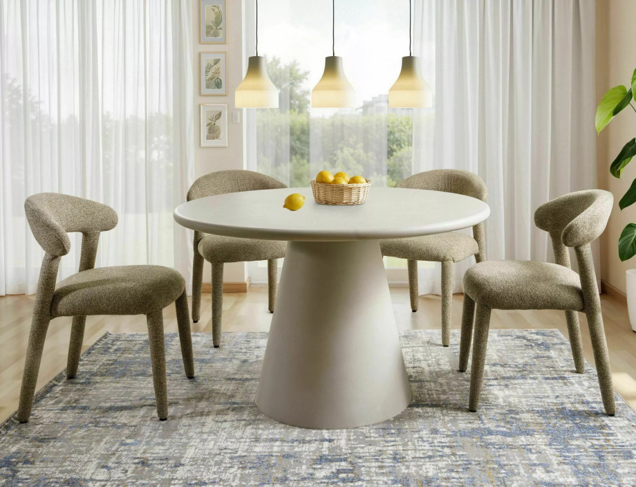 Стол обеденный кухонный Aurora ø120 см МДФ + микроцемент Светло-серый / Светло-серый каркас