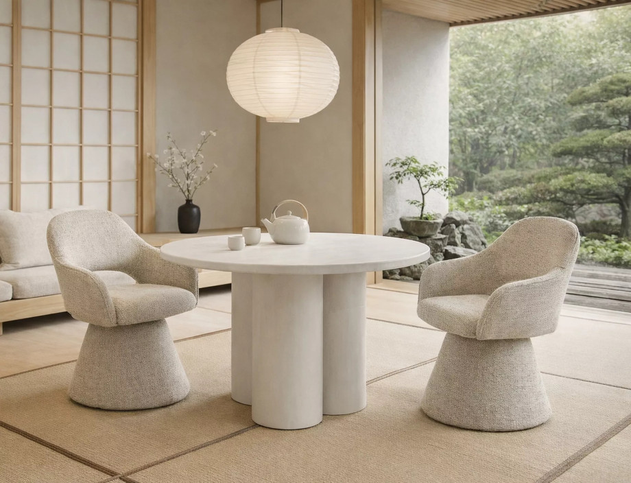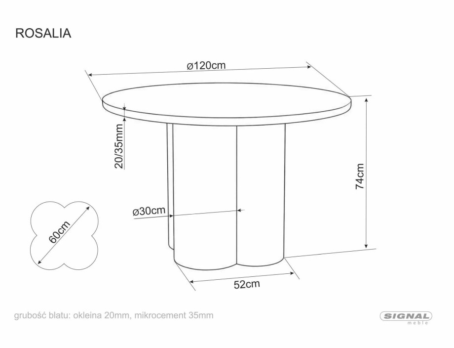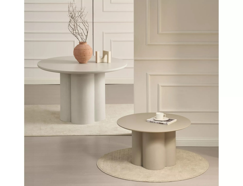 Обеденный стол кухонный Rosalia ø120 см МДФ + микроцемент Экрю / Экрю каркас