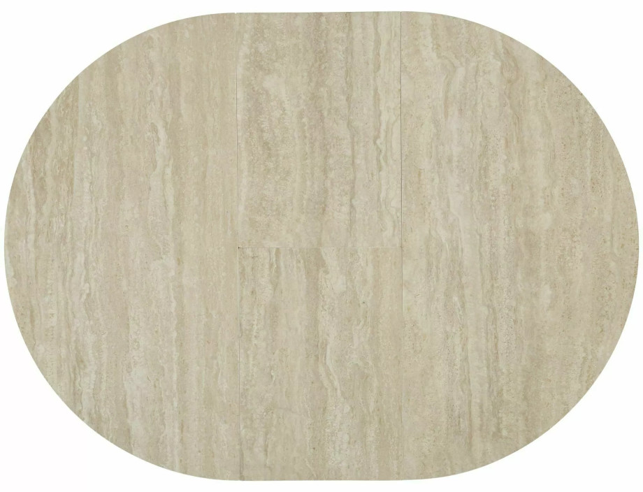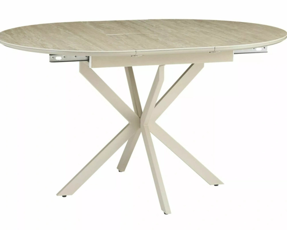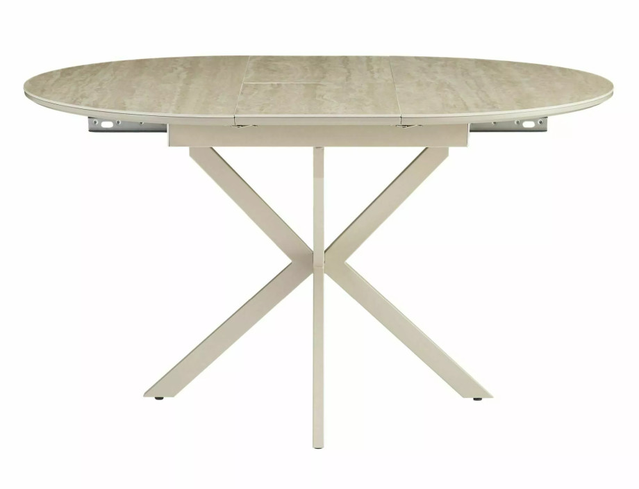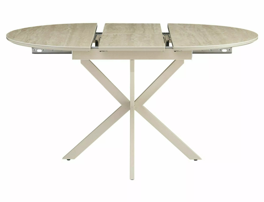 Раскладной стол, столешница: МДФ + травертин, керамика, каркас: металл, цвет: глянцевый бежевый/кашемир.