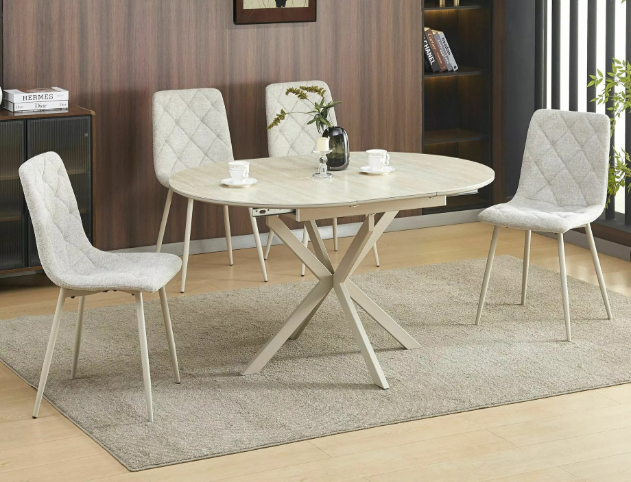 Стол обеденный раскладной кухонный Gaston Ceramic 100 (100–135)×100 см МДФ + керамика Беж / Кашемир каркас