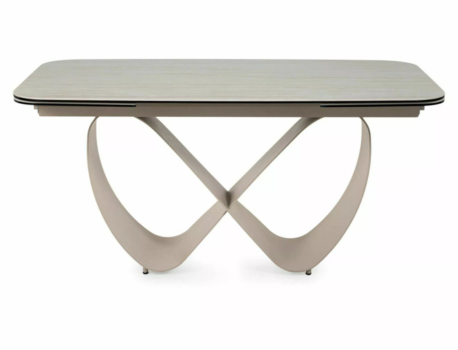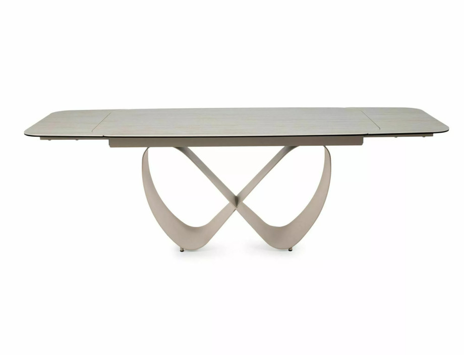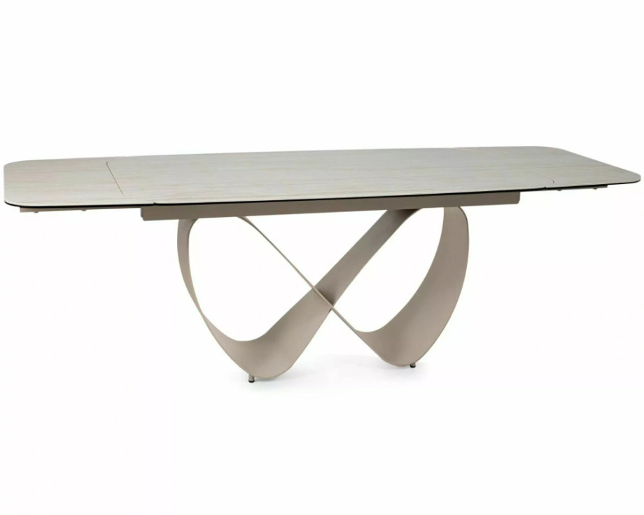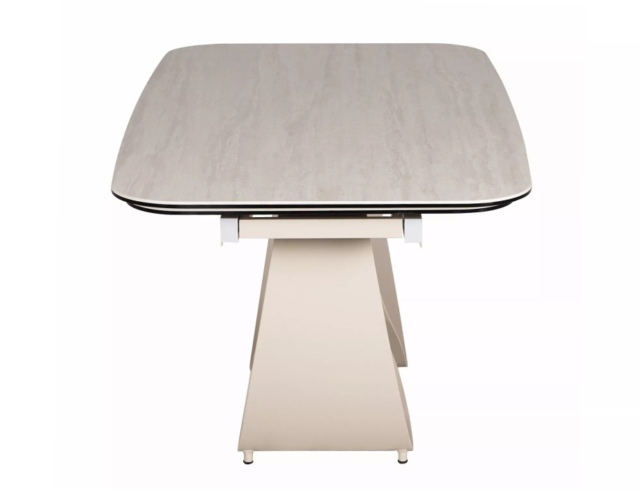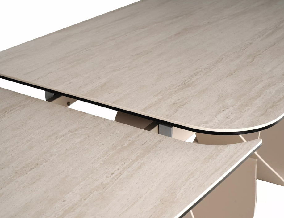 Раскладной стол, столешница: закаленное стекло + керамика Травертин, каркас: металл, цвет: матовый бежевый/кашемир.