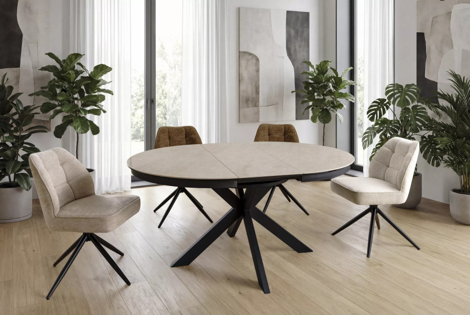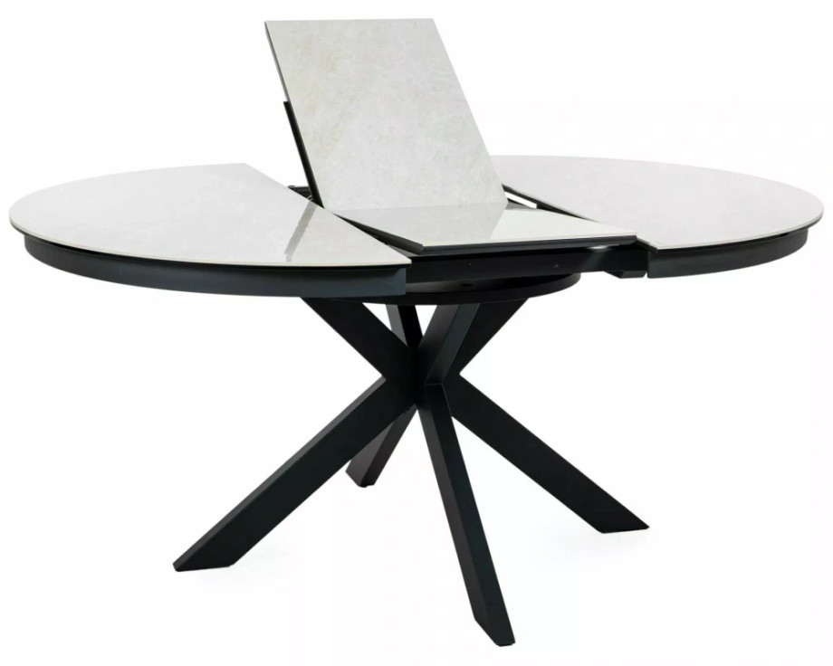 Стол обеденный кухонный раскладной Porto Ceramic (120–160)×120 см Керамика Беж / Черный каркас
