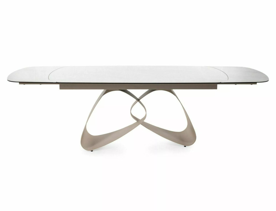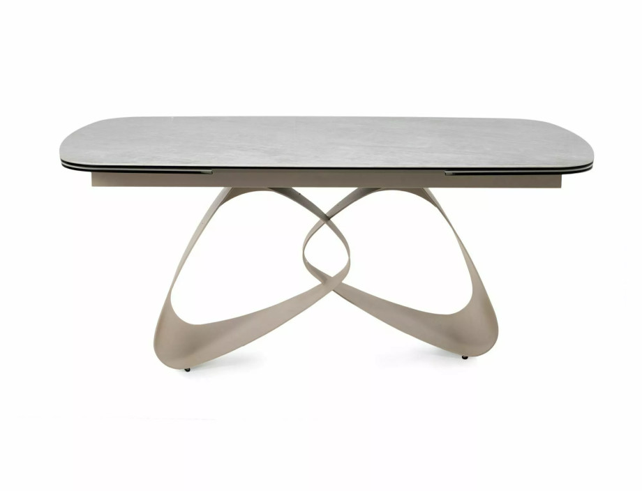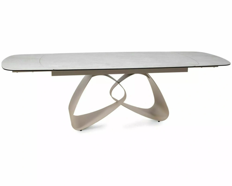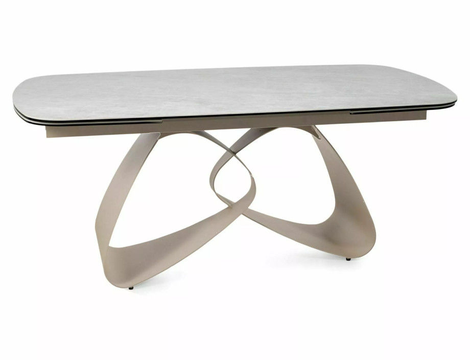 Раскладной стол, столешница: закаленное стекло + керамика Тадж-Махал, каркас: металл, цвет: глянцевый бежевый/кашемир.