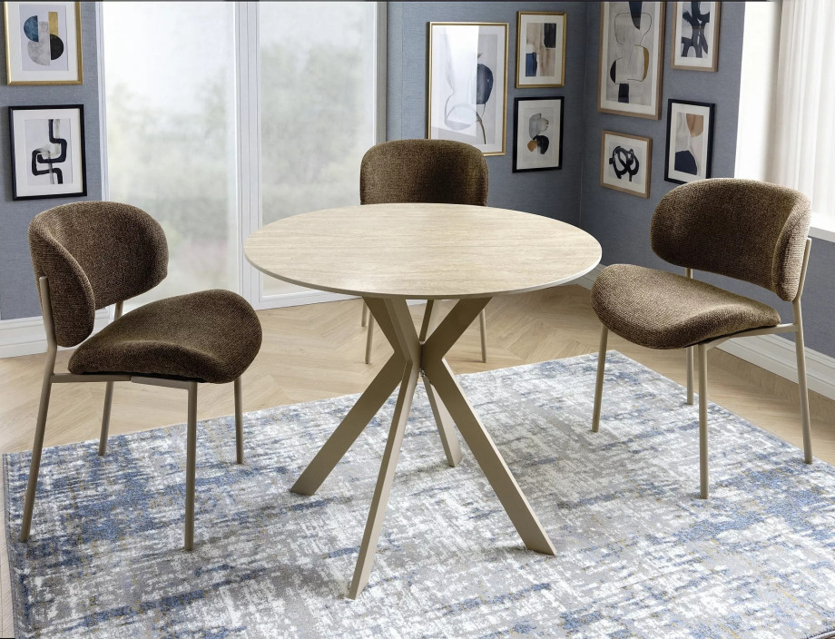 Стол, столешница: керамика травертин, каркас: металл, цвет: матовый бежевый/кашемир.