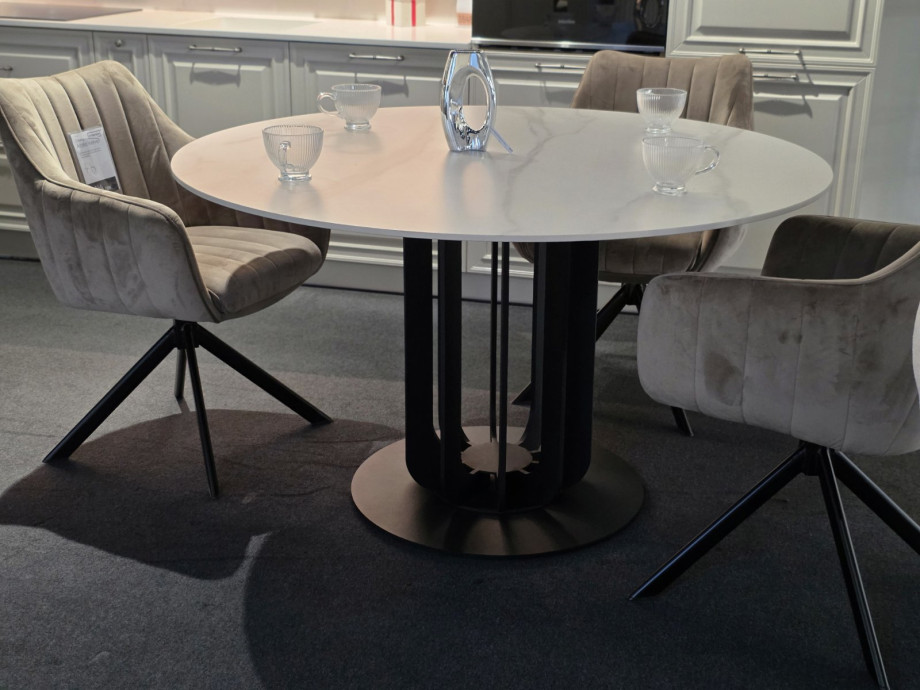 Обеденный стол OLYMPIA CERAMIC стол белый мат/черный д,130