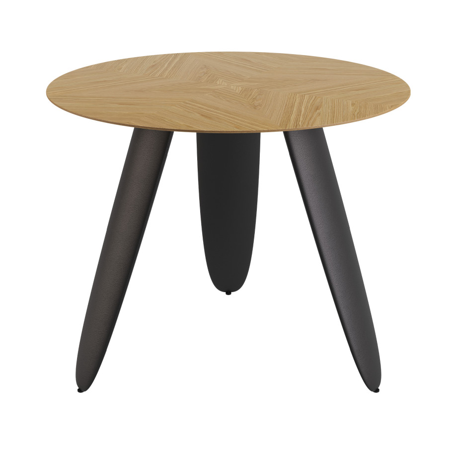 Три массивные ножки необычной формы создают визуальную легкость и одновременно стабильность конструкции. Они выполнены из и , что добавляет мягкости линиям и делает дизайн теплее и тактильнее.