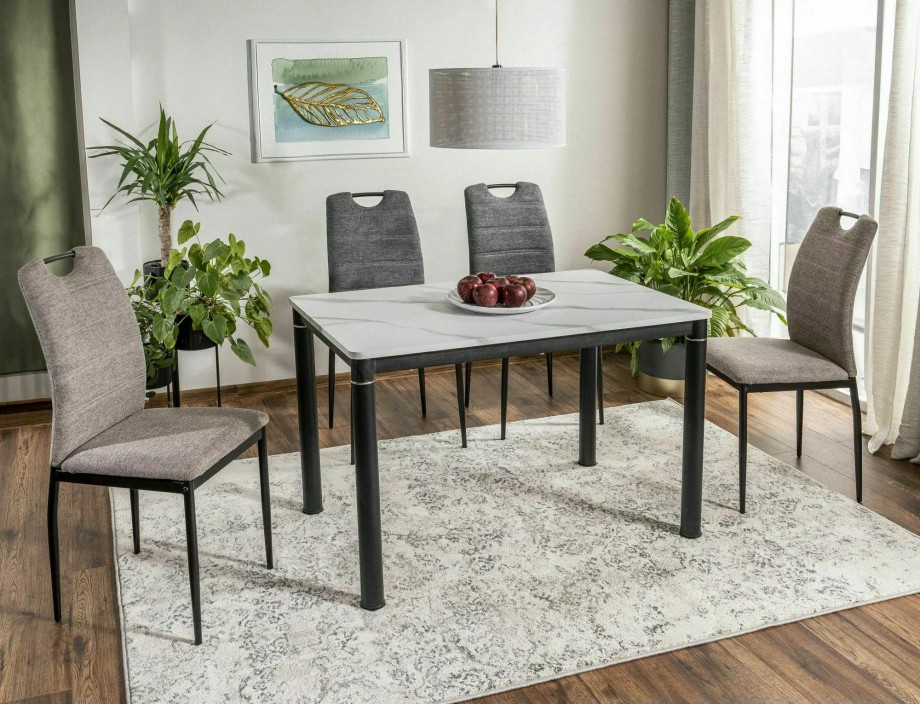Стол обеденный DAMAR Белый Эффект Мрамора / Черный мат 100X60 DAMARBC100
