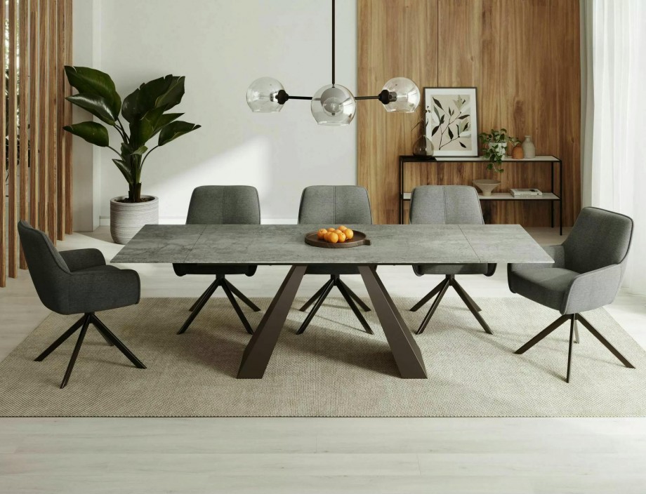 Стол обеденный раскладной SALVADORE CERAMIC Светло-Серый Pietra di Savoia / Черный мат (160-240)X90 SALVADOREJSZC160