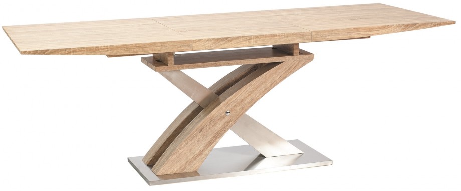 Прямоугольный стол Raul выполнен в лучших традициях «артовости». Если столешница ничем незаурядным от аналогичных раскладных моделей не отличается, Х-образная ножка стола – пик сезона! Уже за счет этой детали, изготовленной из МДФ и прочной матовой стали, любая комната превратится в локацию «от кутюр».