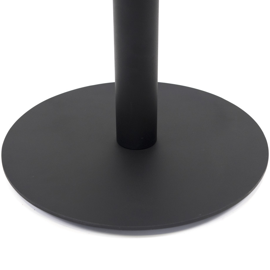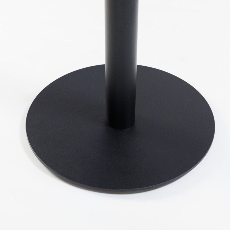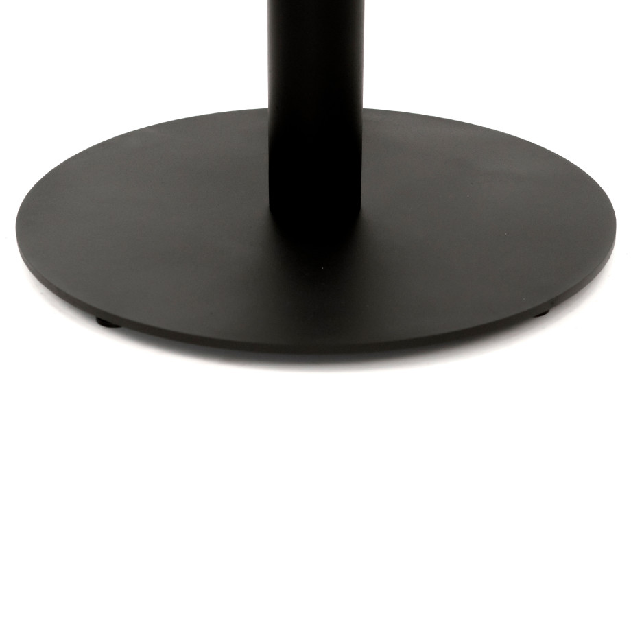 Опора стола состоит из нижнего основания диаметром 400 мм толщиной 6 мм с регулируемыми ножками, трубы диаметром 60 мм с толщиной стенки 1,5 мм, и крепежной пластины 200х200х4 мм. Покрывается порошковой краской. Это делает конструкцию устойчивой к отрицательному воздействию влаги и механическим повреждениям.