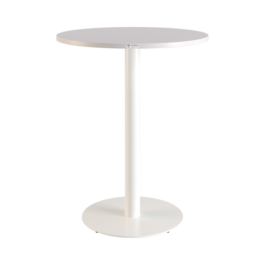 В производстве используются только экологические и натуральные материалы. Стол выполнен с круглой столешницей из ламинированного ДСП. Она выглядит легко и не перегружает пространство, а благодаря использованию специальной технологии получается еще и достаточно прочной. Опора из металла имеет порошковую окраску, которая делает ее устойчивой к разным негативным воздействиям.