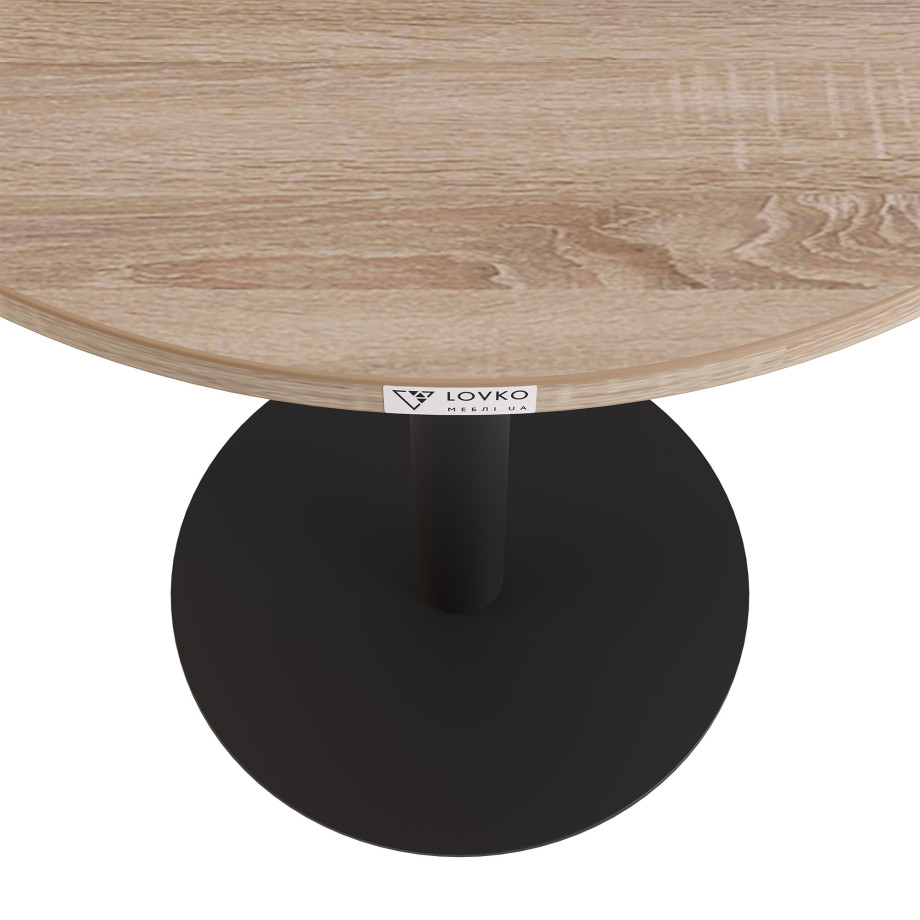 В производстве используются только экологические и натуральные материалы. Стол выполнен с круглой столешницей из ламинированного ДСП. Она выглядит легко и не перегружает пространство, а благодаря использованию специальной технологии получается еще и достаточно прочной. Опора из металла имеет порошковую окраску, которая делает ее устойчивой к разным негативным воздействиям.