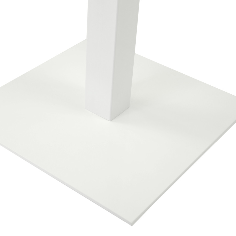 Металлический каркас стола состоит из двух частей. Основание 400х400 толщиной 6 мм. И квадратная стойка из трубы 60х60 мм, толщиной стенки 1,5 мм. К стойке приварена пластина для крепления столешницы. Опора стола выполняется из металла с порошковой покраской. Он делает стол более устойчивым к влаге и механическим повреждениям.