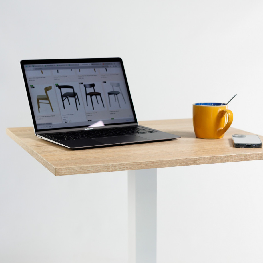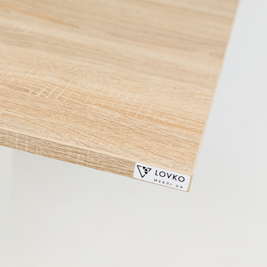 В изготовлении используются надежные и практичные материалы, имеющие долговечное покрытие. Металлическая опора выполнена с порошковой покраской, что делает ее устойчивой к влаге и другим отрицательным воздействиям. Столешница изготавливается из ламинированного ДСП толщиной 18 мм, поэтому имеет привлекательный внешний вид и неприхотлива в уходе.