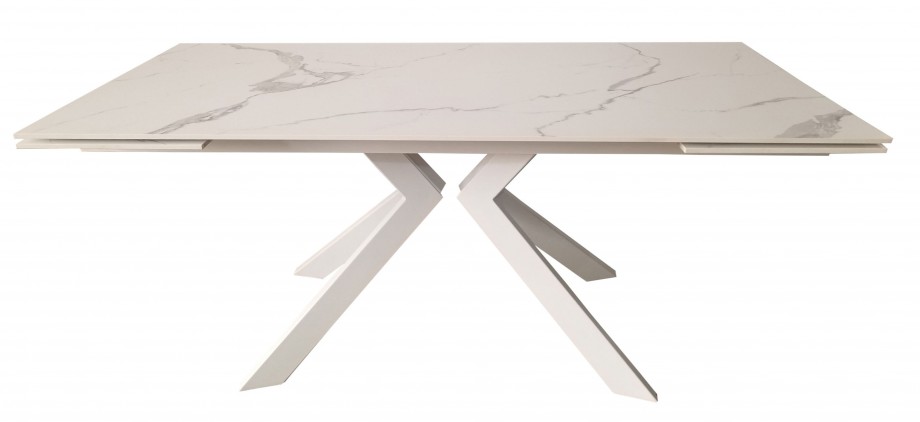 Сдержанный дизайн стола Swank Staturario White станет основным акцентом обеденной зоны. Прямоугольная столешница состоит из керамики толщиной 10 мм. Металлические ножки в полусогнутой форме придают столу оригинальный вид и не занимают много пространства. При необходимости можно увеличить полезную площадь поверхности на 80 см благодаря дополнительным вставкам по бокам. Раздвижной механизм прост в использовании и не требует много времени для сборки. Прекрасное сочетание стиля и функциональности.