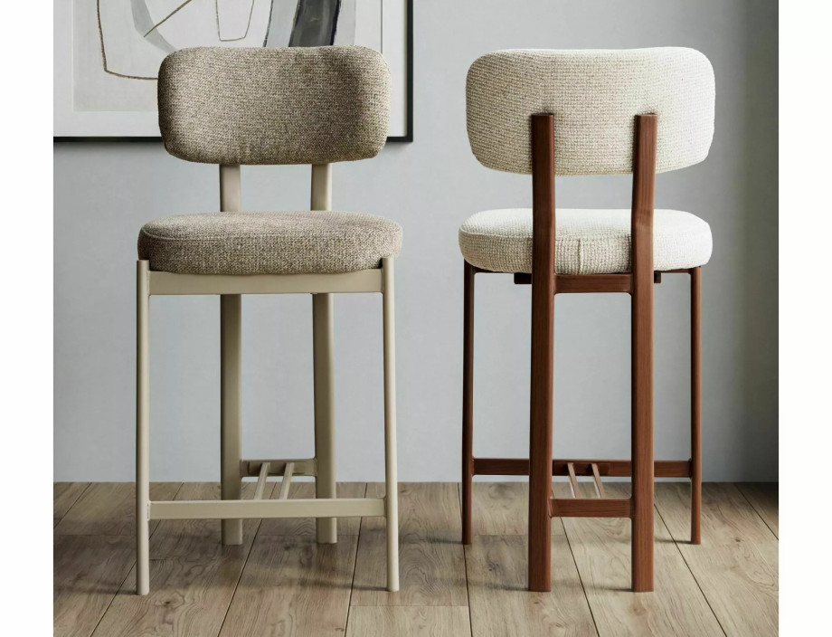 Полубарный кухонный стул Misaki H-2 Светло-бежевая ткань / Орех каркас