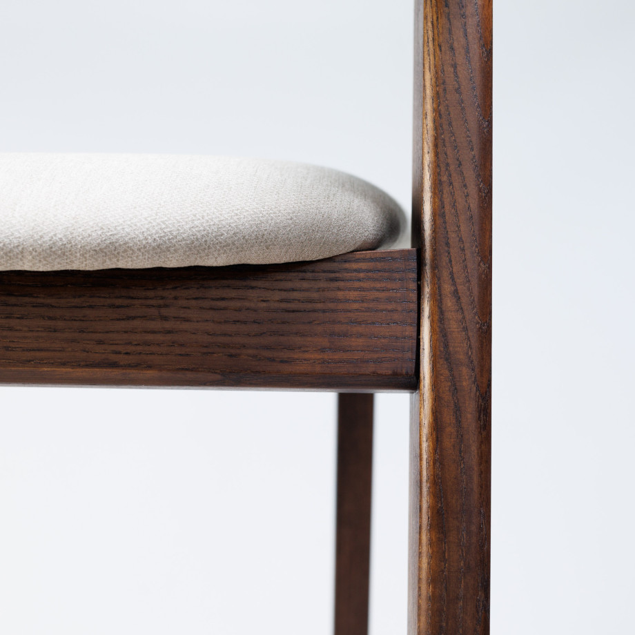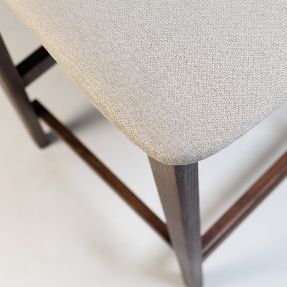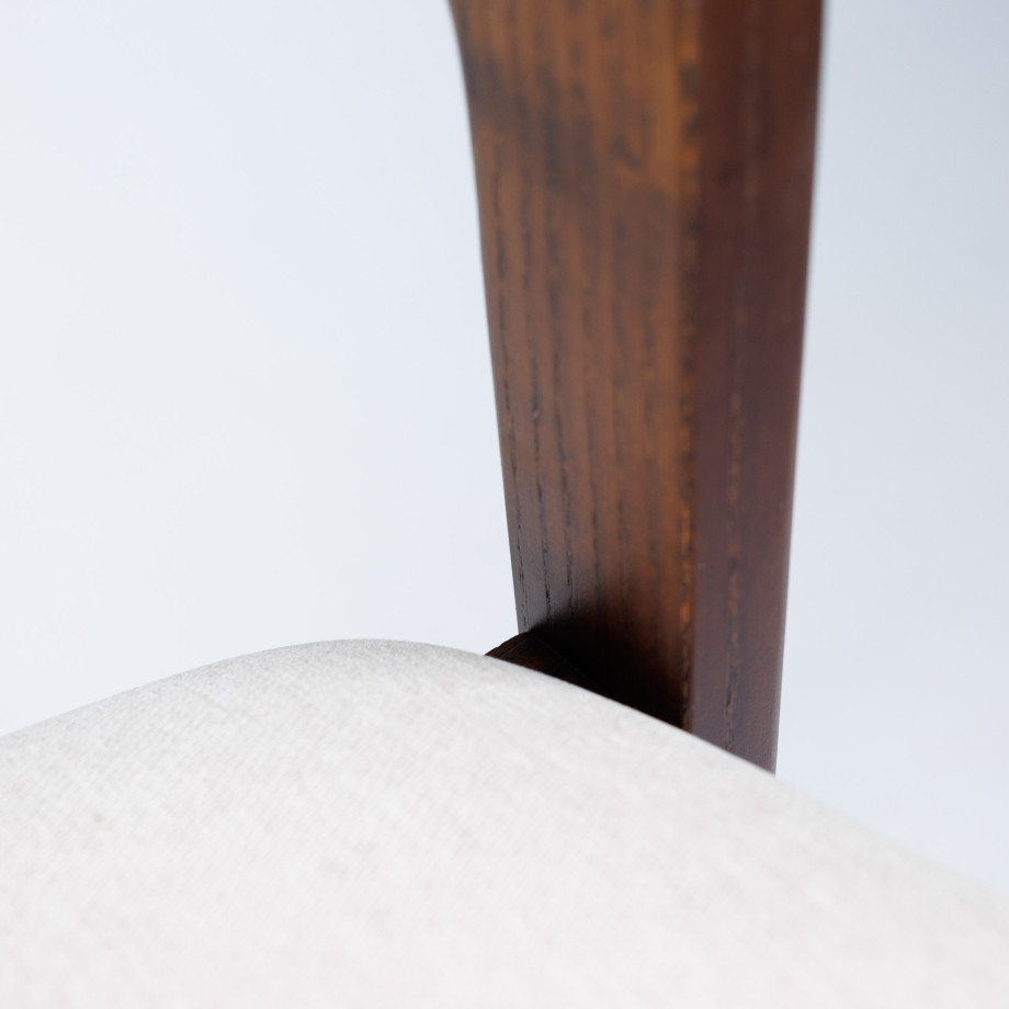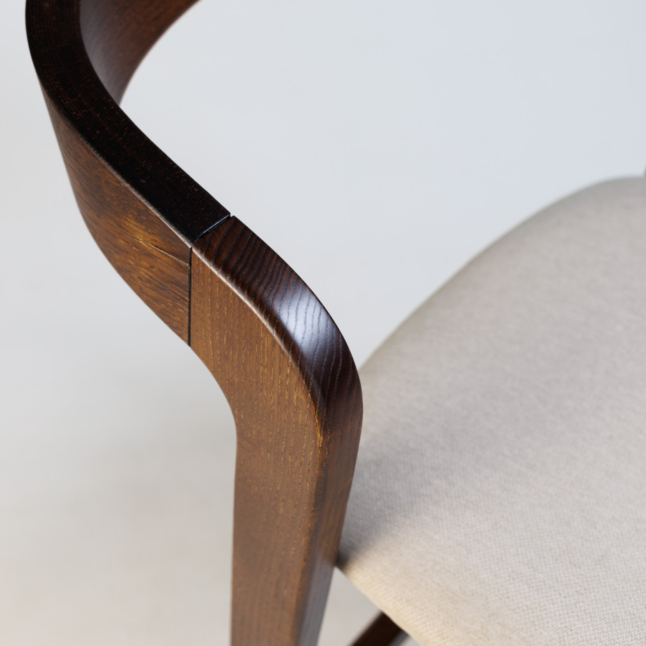Каркас, как и раньше, выполнен полностью из натуральной древесины. Спинка из шпонированной гнутой фанеры.