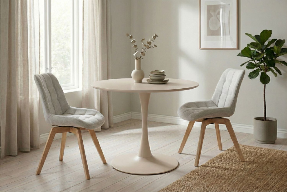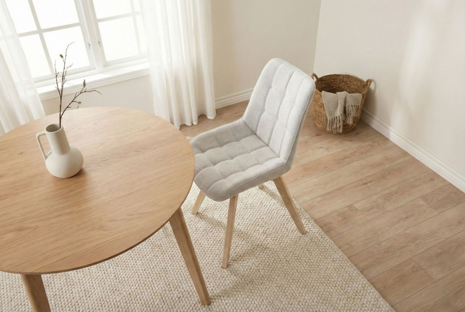 LENY с каркасом из каучукового дерева и серой тканевой обивкой добавляет интерьеру уюта и естественности. Отлично подходит для кухни и dining-зоны.