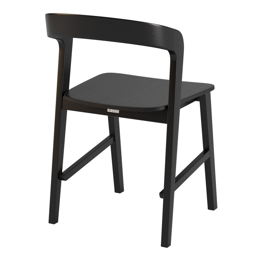 Спинка стула изготовлена из гнутой фанеры, шпонированной дубом. Это не только придает структурной прочности, но и добавляет элегантности и гармонии дизайну. Гнутая форма спинки стула поддерживает правильное положение спины, обеспечивая оптимальный комфорт для долгих периодов сидения.