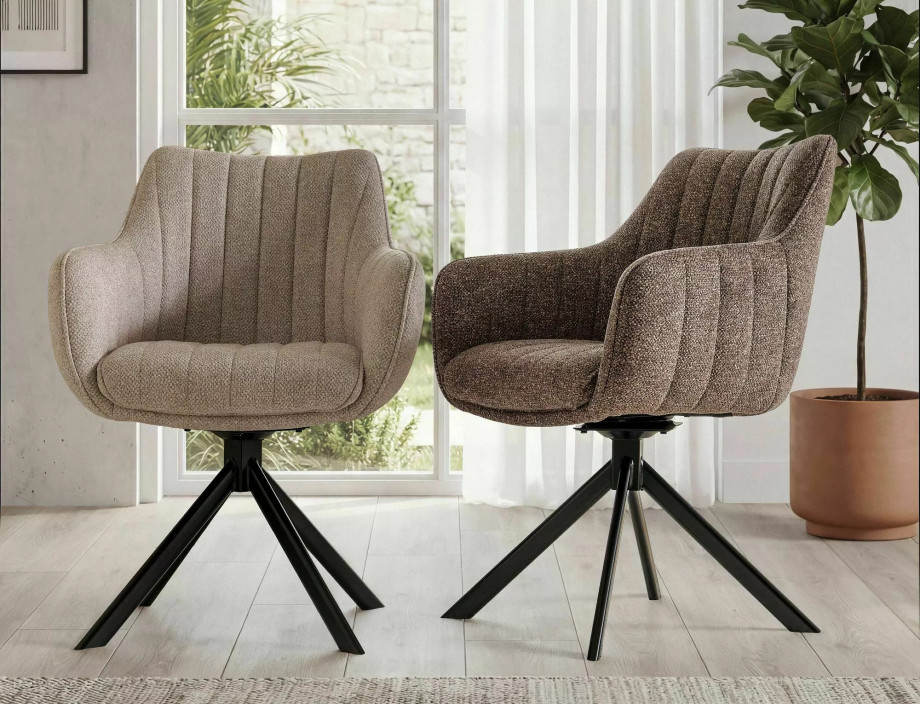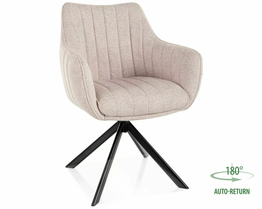Кресло, обивка: ткань Leo, каркас: металл, цвет: светло-бежевый 23/матово-черный. Функция автоматического возврата – сиденье возвращается на 180 градусов, с функцией возврата в исходное положение.