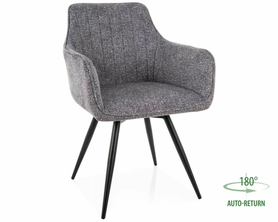 Кресло, обивка: ткань Leo, каркас: металл, цвет: серый 07/матовый черный. Функция автоматического возврата – сиденье возвращается на 180 градусов, с функцией возврата в исходное положение.