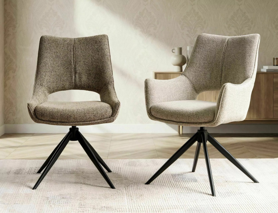 Стул кухонный обеденный мягкий Fino I Темно-бежевая ткань Noelle / Черный каркас