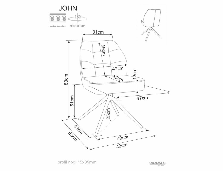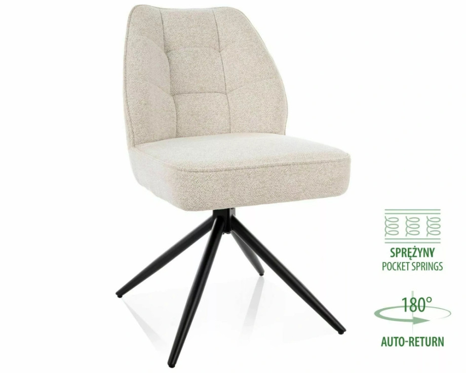 Стул, обивка: ткань Raven, каркас: металл, цвет: светло-бежевый 22/матово-черный. Функция автоматического возврата – сиденье возвращается на 180 градусов, с функцией возврата в исходное положение. Сидение оснащено пружинами карманного типа.