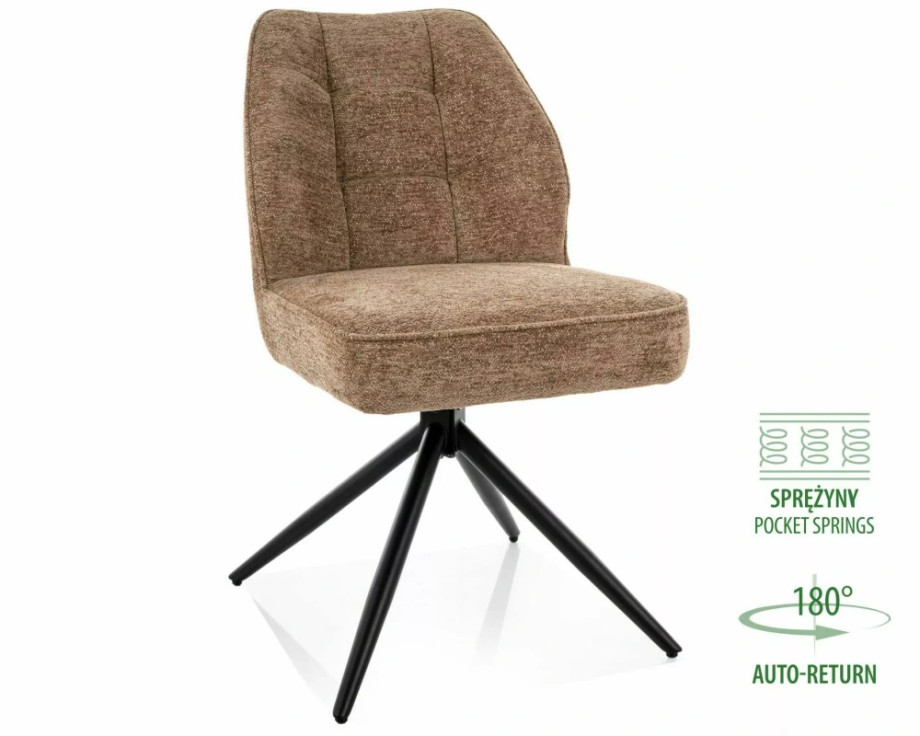 Кресло, обивка: ткань Raven, каркас: металл, цвет: латте 34/матовый черный. Функция автоматического возврата – сиденье возвращается на 180 градусов, с функцией возврата в исходное положение. Сидение оснащено пружинами карманного типа.
