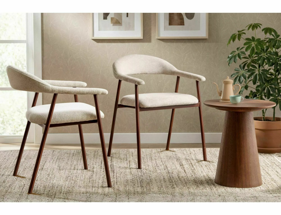 Стул кухонный обеденный мягкий Lagos D Raven Светло-бежевая ткань / Орех каркас