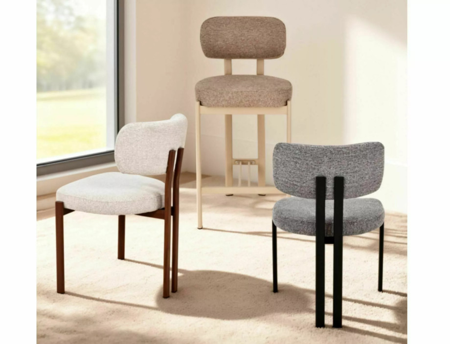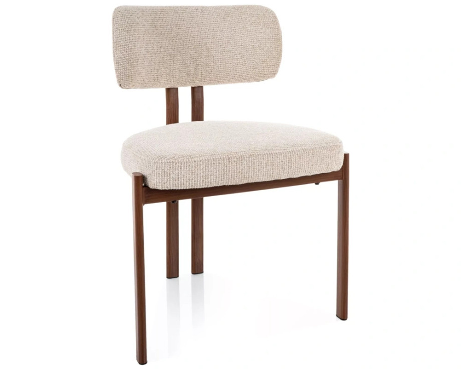 Стул кухонный обеденный мягкий Misaki D Светло-бежевая ткань / Орех каркас
