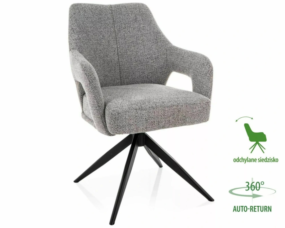 Кресло, обивка: ткань Noelle, каркас: металл, цвет: серый 09/матовый черный. Функция автоматического возврата – сиденье вращается на 360 градусов, с функцией возврата в исходное положение, функция наклона сиденья.