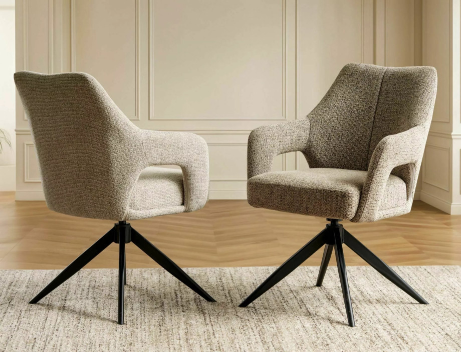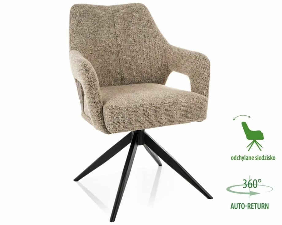 Кресло, обивка: ткань Noelle, каркас: металл, цвет: темно-бежевый 33/матово-черный. Функция автоматического возврата – сиденье вращается на 360 градусов, с функцией возврата в исходное положение, функция наклона сиденья.