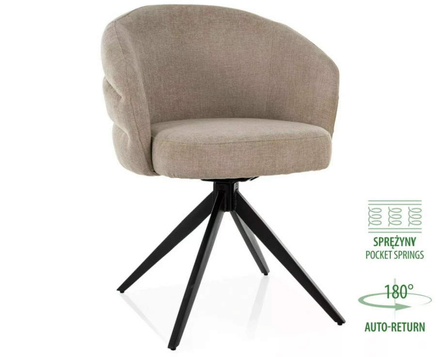 Стул, обивка: ткань, каркас: металл, цвет: 250 бежевый/матово-черная обивка. Функция автоматического возврата – сиденье возвращается на 180 градусов, с функцией возврата. Сидение оснащено пружинами карманного типа.