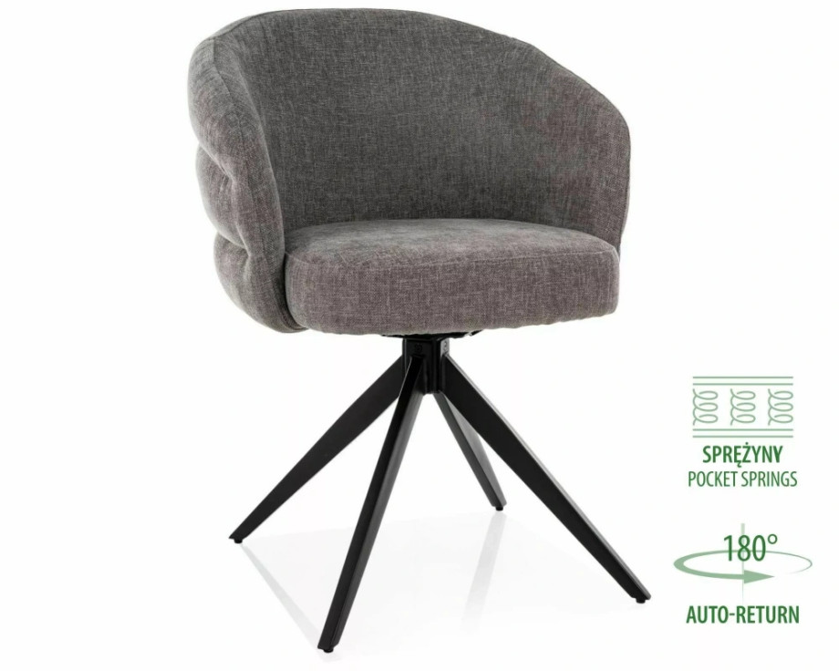 Стул, обивка: ткань, каркас: металл, цвет: 252 серый/матово-черная обивка. Функция автоматического возврата – сиденье возвращается на 180 градусов, с функцией возврата. Сидение оснащено пружинами карманного типа.