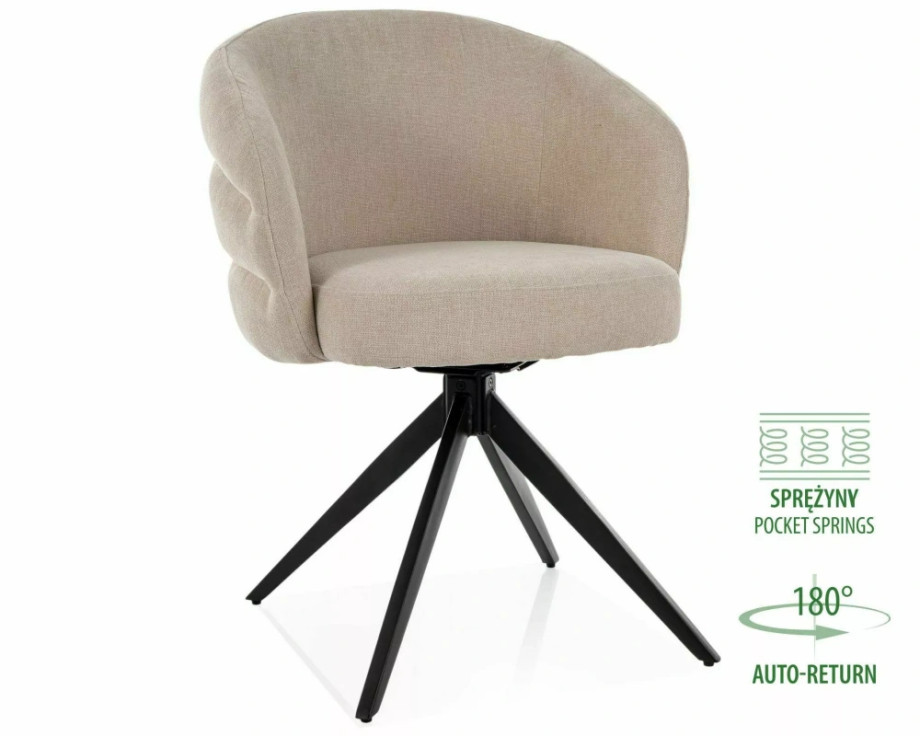 Стул, обивка: ткань, каркас: металл, цвет: обивка 251 светло-бежевый/матово-черный. Функция автоматического возврата – сиденье возвращается на 180 градусов, с функцией возврата в исходное положение. Сидение оснащено пружинами карманного типа.