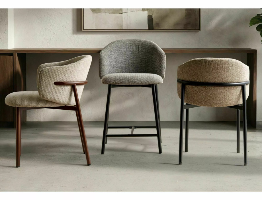 Стул кухонный обеденный мягкий Osaka D Светло-бежевая ткань / Орех каркас