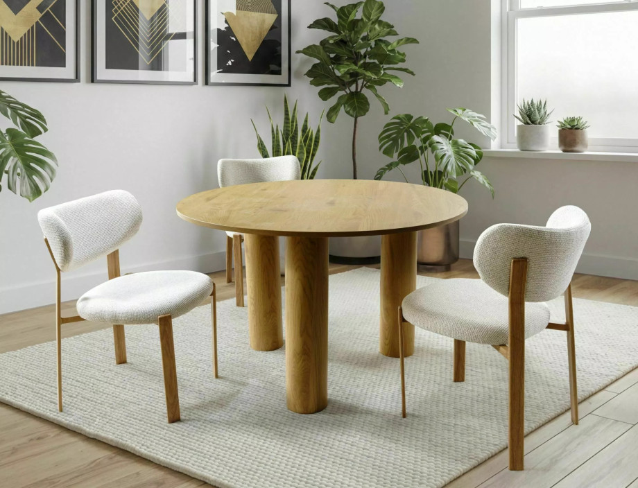 Стул кухонный обеденный мягкий Rin D Светло-бежевая ткань / Дуб каркас