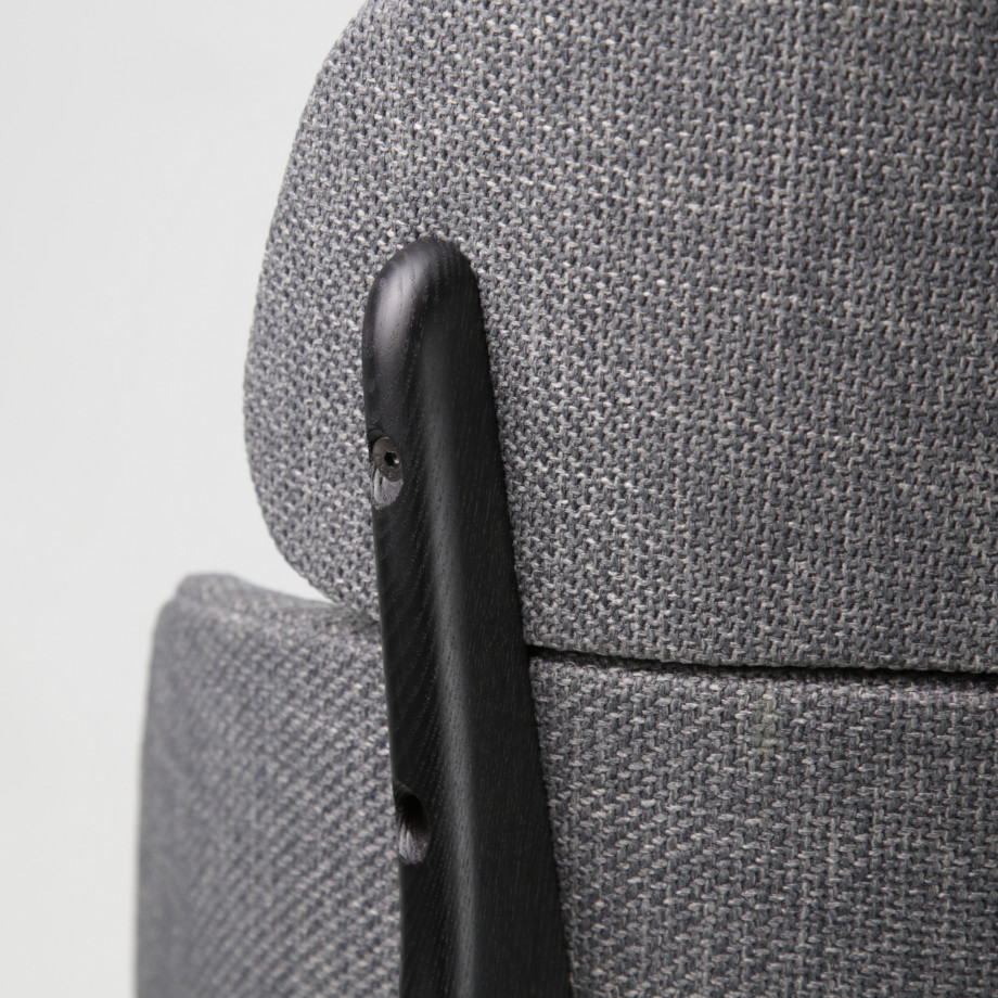 Плавная линия спинки, переходящая в подлокотник, напоминает расправленное крыло лебедя — отсюда и название.