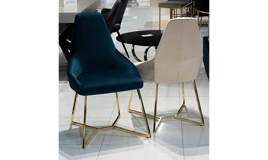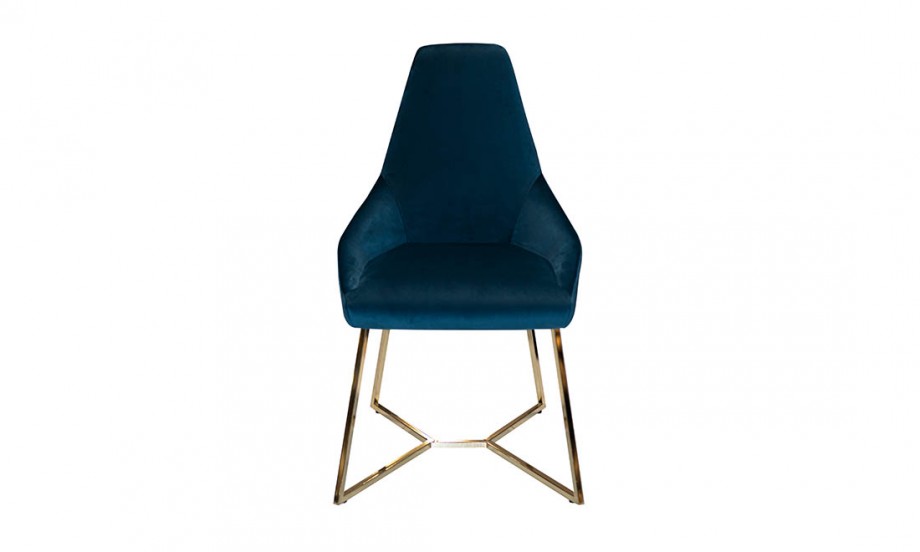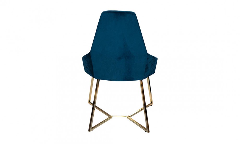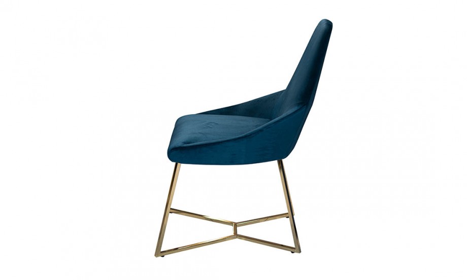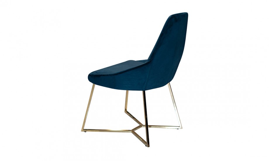 Обивка (спинка и сидушка): велюр лазурного цвета; Ноги: металл хромированный золотого цвета; макс.допустимая нагрузка 120 кг