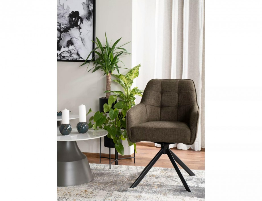 Стул, обивка: ткань Bjorn, каркас: металл, цвет: 77 оливковый/черный матовый. Функция автовозврата – сиденье можно повернуть на 180 градусов, с функцией возврата в исходное положение. Карманные пружины в сиденье