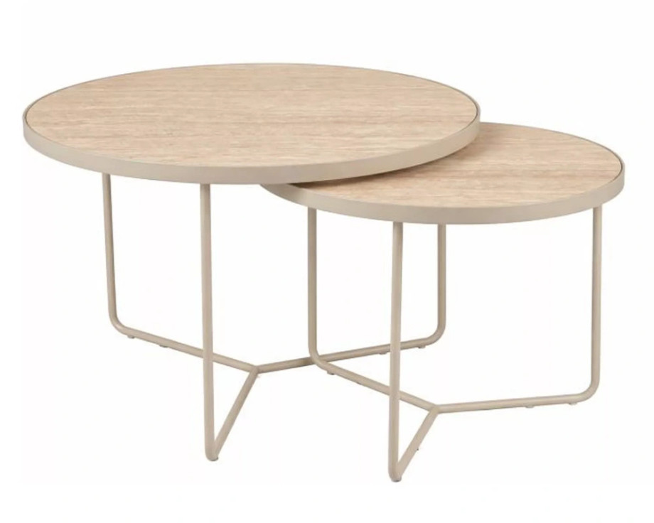Набор журнальных столиков, столешница: керамика травертин, каркас: металл, цвет: матовый бежевый/кашемир.