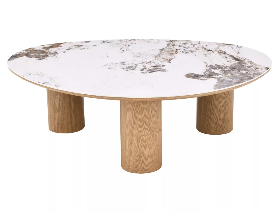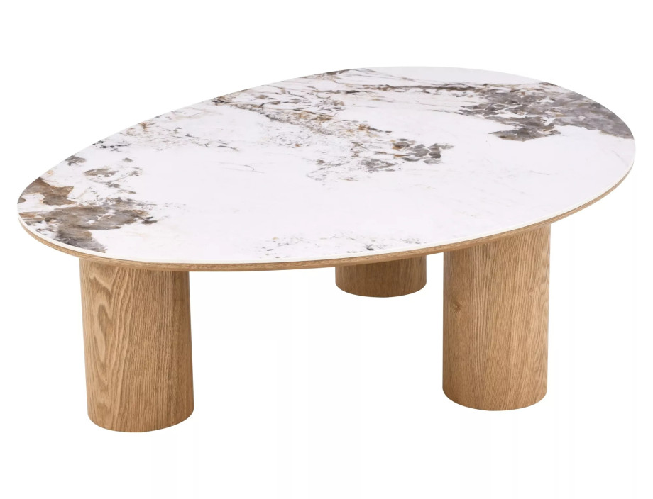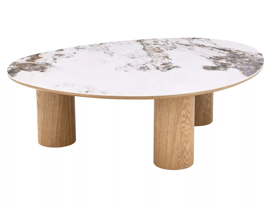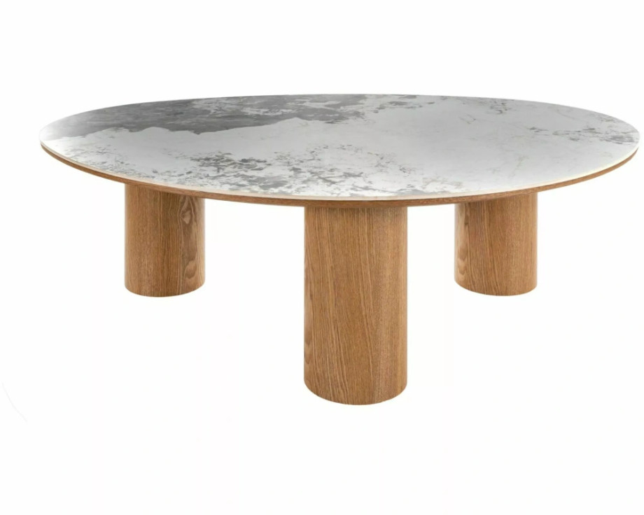Журнальный столик, столешница: МДФ+керамика Pandoro, каркас: МДФ+натуральный шпон, цвет: глянцевый белый/дуб.