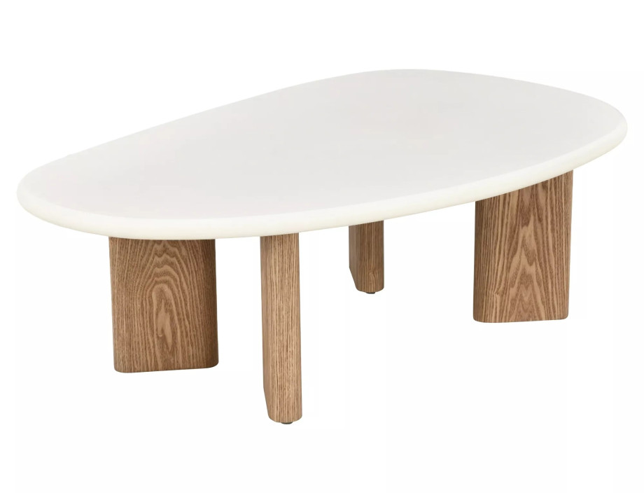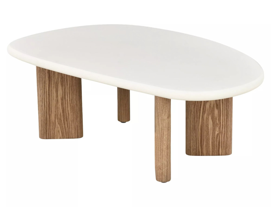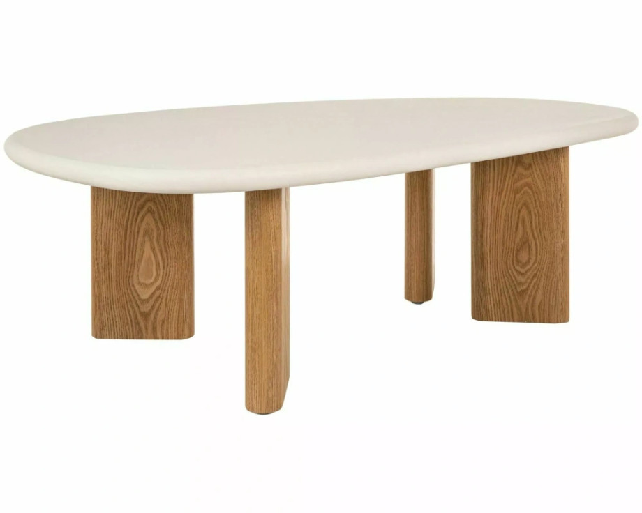 Журнальный столик, столешница: МДФ+микроцемент, каркас: МДФ+натуральный шпон, цвет: экрю/дуб.